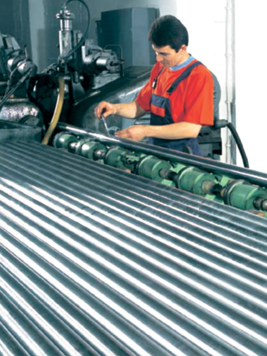 • Peeled pipes with hard chrome plated outside surface and raw material inner surface.